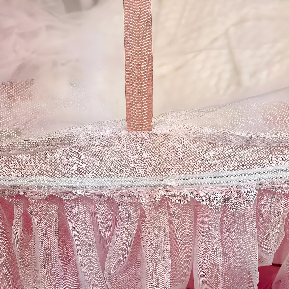Grâce à son système de fixation pratique, notre Ciel de Lit Adulte Blanc Rose s’adapte aux lits doubles.