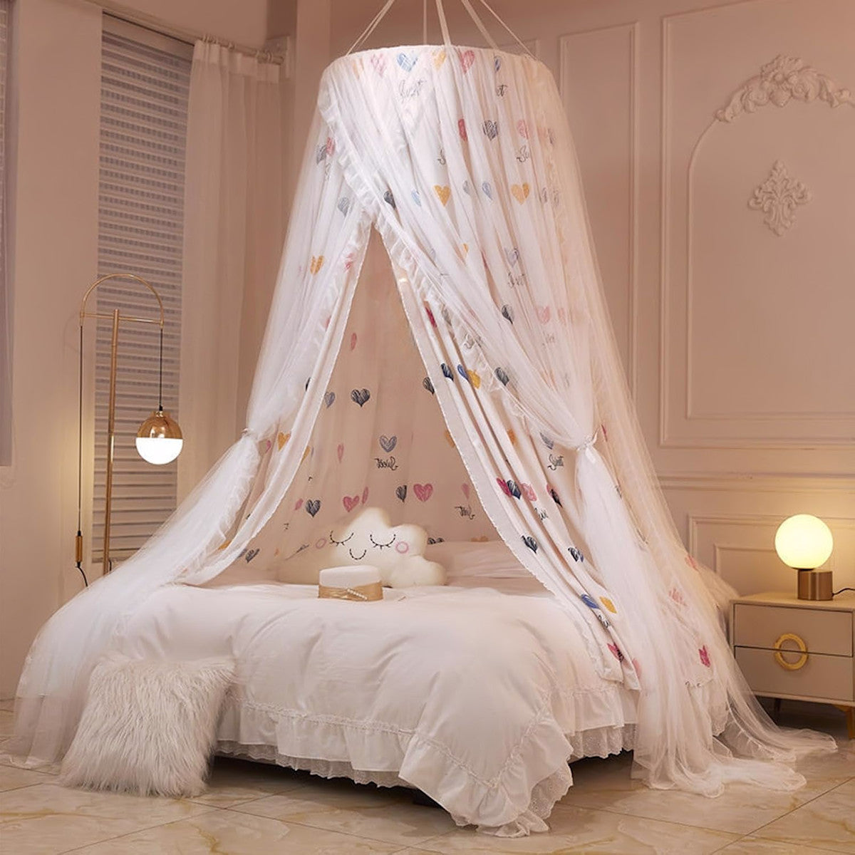 Notre Ciel de Lit Cœur Blanc s'adapte à toutes les décorations, qu'elles soient classiques, modernes ou bohèmes, ajoutant une note d'élégance intemporelle.